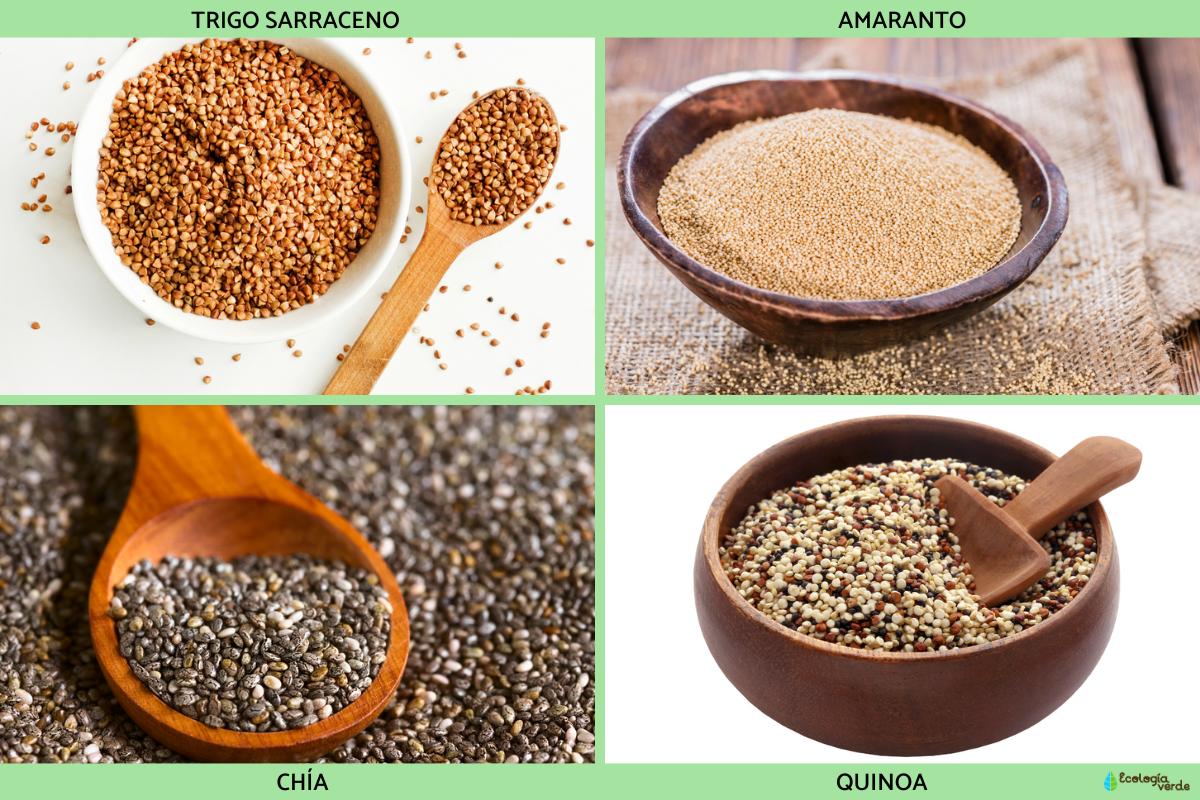 Los pseudocereales son granos de consumo humano. Algunos ejemplos son la chía, la quinoa y el amaranto. Sus beneficios son apoyo del sistema inmune, bajo índice glucémico, alto contenido de proteínas, minerales y vitaminas. La diferencia con los cereales es que pertenecen a diferentes familias taxonómicas.