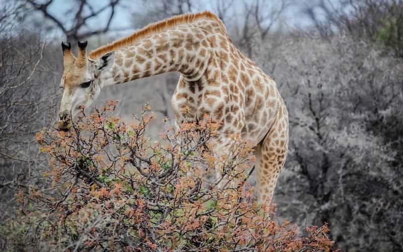 Sin embargo, el alimento que forma parte de un extenso porcentaje dentro de su dieta, es la acacia (Familia Fabaceae), un género de arbustos y árboles que se extienden por el continente africano y Australia.