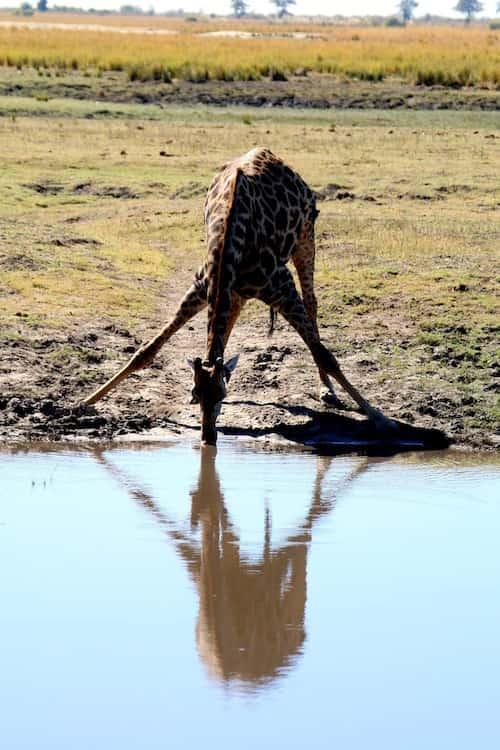 Para tratar de evitar tales situaciones de peligro, las jirafas suelen ir en grupos hacia los cuerpos de agua para tomar turnos. Mientras unas beben, otras más se encargan de la vigilancia. Ante la mínima sospecha de un depredador aproximándose, las jirafas huyen o toman posición defensiva. Es muy difícil que un depredador pueda obtener victoria ante un grupo de jirafas preparadas para luchar.