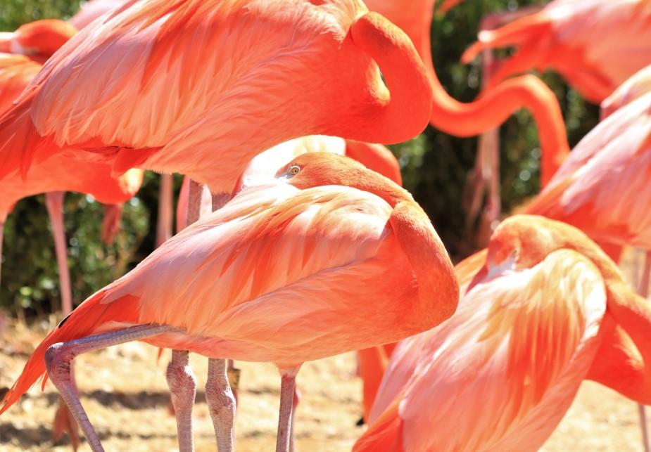 Como dato curioso, seguramente, alguna vez has visto a los flamencos dormir sobre una pata y te habrás preguntado el porqué de esta posición. Pues bien, esto se debe a que estos animales gozan de una gran capacidad de mantener el equilibrio sin apenas invertir esfuerzo. De hecho, con esta posición gastan la misma energía que si usaran las dos patas. Todo esto viene dado por el “aparato de parada”, que consiste en que cuando los flamencos se posicionan sobre una sola pata, este bloquea las pata en una posición concreta, de manera que se activan unos músculos y ligamentos que evitan que el animal se desestabilice y le permiten gozar de un equilibrio sin tener que hacer un esfuerzo consciente para mantenerlo. Otro dato curioso también es que a menudo los flamencos descansan su cabeza sobre su cuerpo para evitar la fatiga en los músculos de su largo cuello.