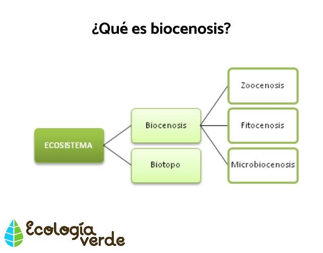 Denominamos biocenosis o comunidad biótica al conjunto de seres vivos (diferentes especies) que conviven, se desarrollan y habitan en un mismo lugar, con una serie de condiciones ambientales y físicas que hacen posible la vida en él, a este espacio físico se le denomina biotopo. Ambos conceptos forman lo que denominamos ecosistema. En este otro artículo de EcologíaVerde explicamos Qué es un ecosistema.