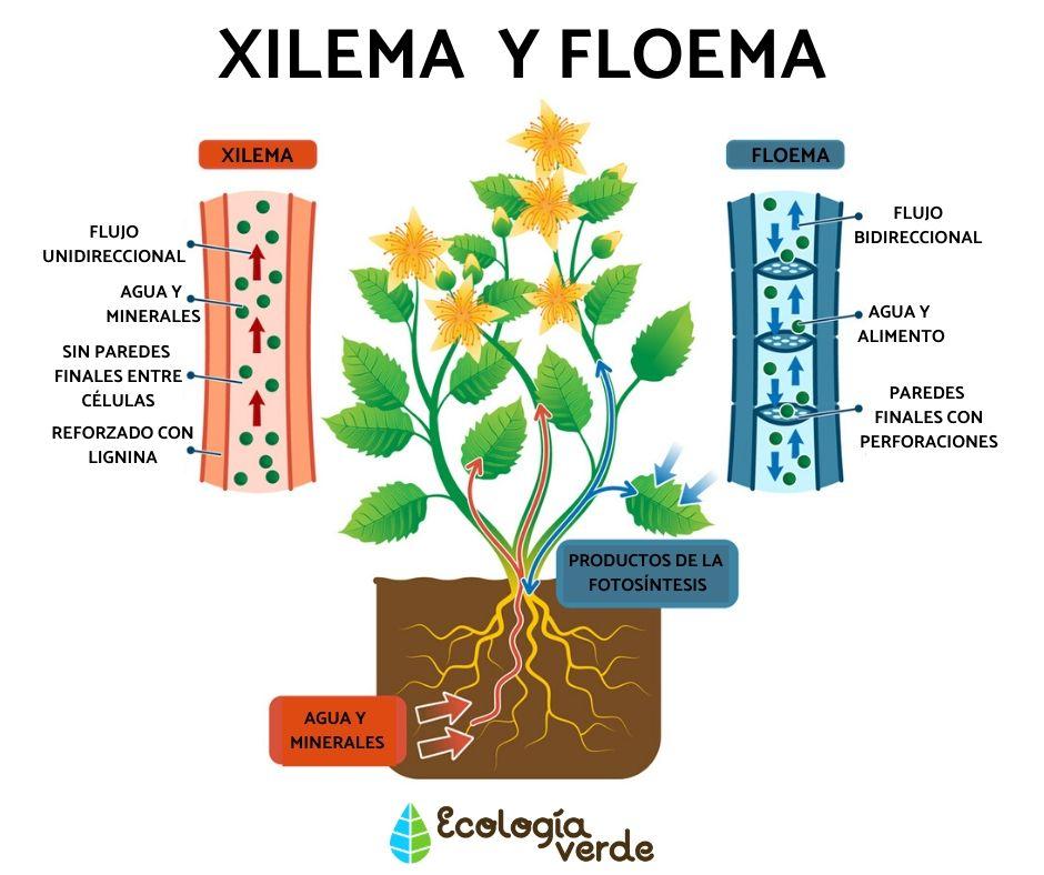 - También es interesante saber que el xilema cuenta con paredes celulares lignificadas, mientras que el floema cuenta con una estructura formada por paredes celulares blandas.