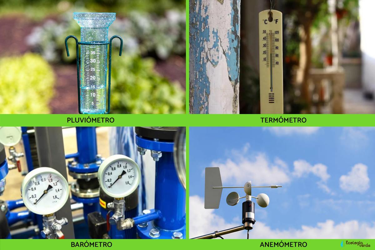 - Termómetro y el termógrafo: para realizar medidas de la temperatura, incluyendo las temperaturas máximas y mínimas.