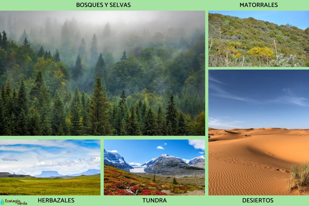Existe una gran variedad de ecosistemas terrestres, los cuales se clasifican en función de cómo son los factores abióticos que dominan sobre ellos y, por tanto, de cómo es el tipo de vegetación predominante, la cual resulta fundamental para los ecosistemas puesto que constituye la base de las relaciones tróficas, sirve de cobijo para numerosas especies y contribuye a la regulación del clima, entre otras funciones.