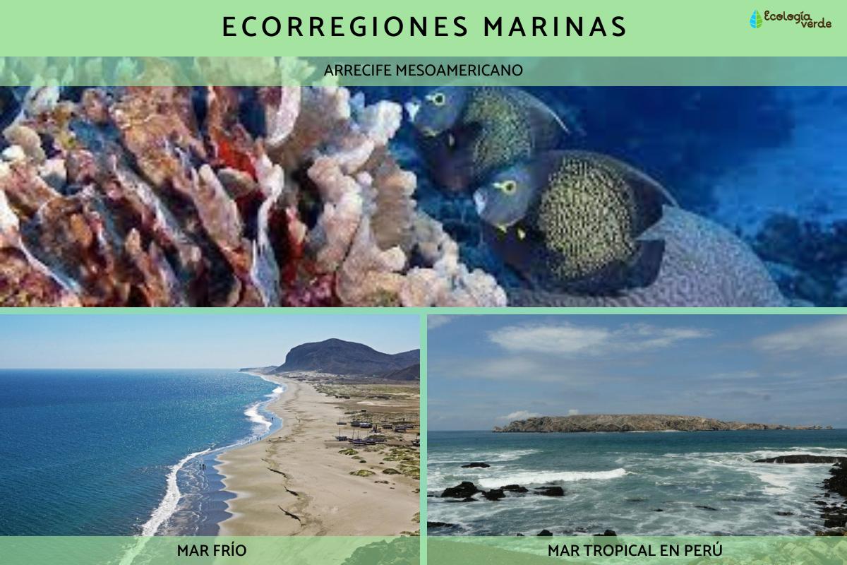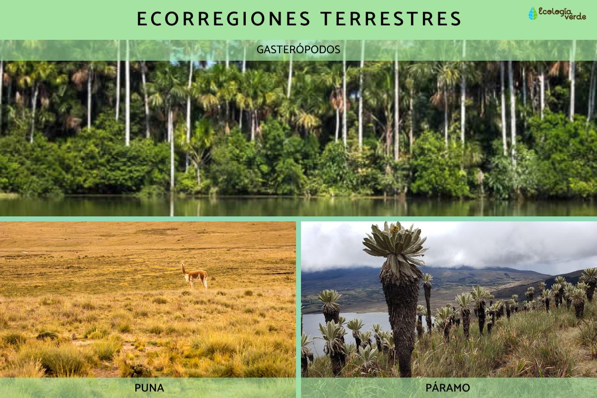 En el planeta podemos encontrar ecorregiones terrestres, de agua dulce y marinas. A continuación, mostraremos algunos ejemplos en los que se destacará algunas ecorregiones del Perú, debido a la gran biodiversidad que caracteriza a este territorio, pero también se hablará de otras ecorregiones de otros países: