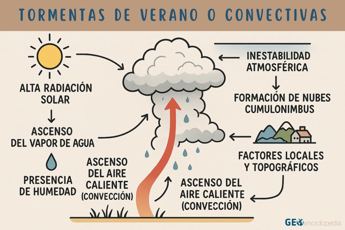 - Factores locales y topográficos: Montañas, cuerpos de agua o zonas urbanas pueden influir en el desarrollo de estas tormentas, actuando como disparadores adicionales del ascenso del aire caliente.