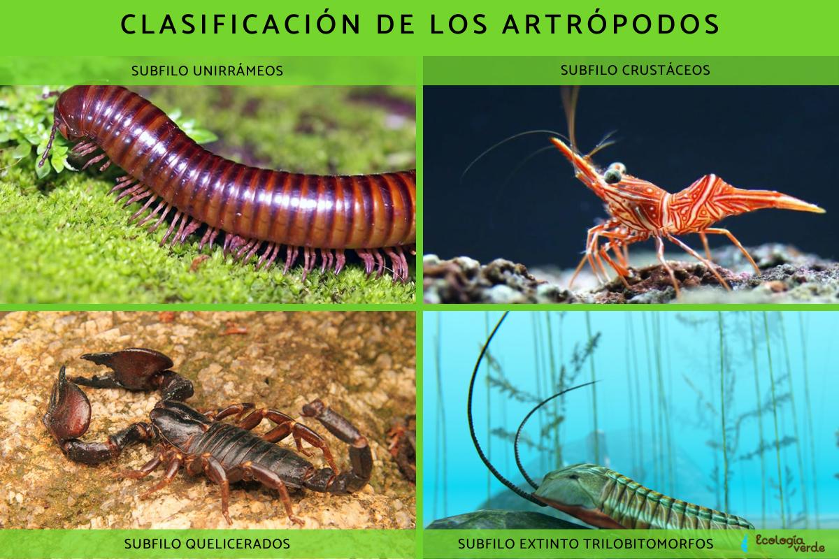 Como hemos visto en el apartado anterior, es posible diferenciar diversos tipos de artrópodos según sus estructuras anatómicas y filogenia. Dentro de esta increíble variedad, podemos ver que: