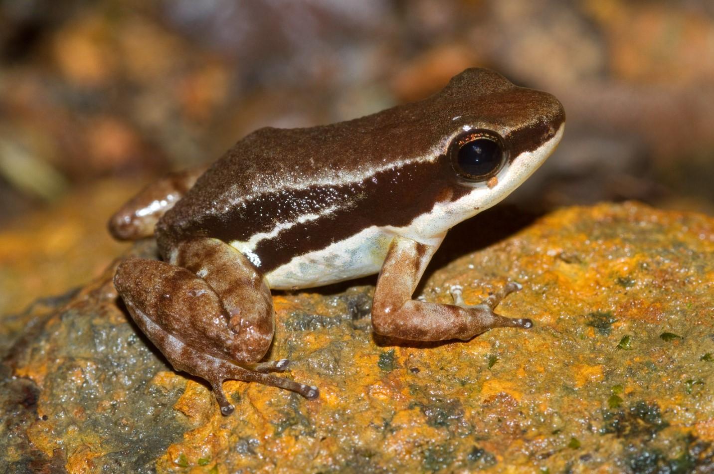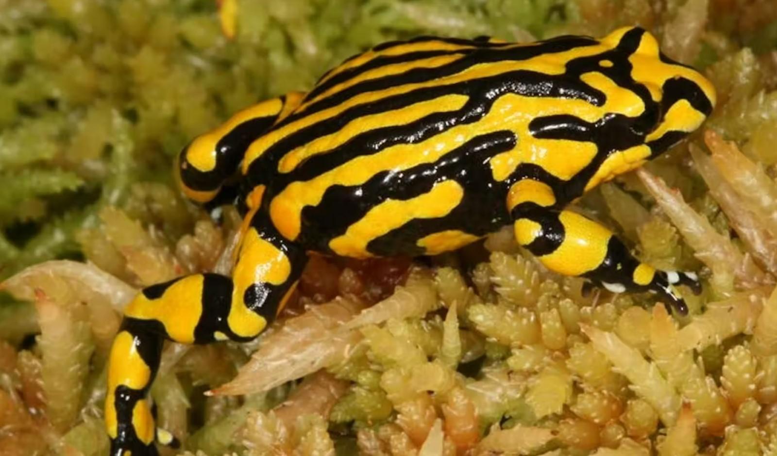 Esta es una rana venenosa originaria de Australia y Tasmania, que también es especial porque puede sintetizar su propio veneno. Son unas ranas negras con muchas líneas curvas amarillas brillantes. El veneno alcaloide es único y se llama seudophrinamina, haciendo referencia al nombre científico de la rana. Este veneno es secretado a través de la piel, y si bien tiene función contra depredadores, también se ha sugerido que sirve para combatir posibles infecciones, a las que son sumamente propensos los anuros.