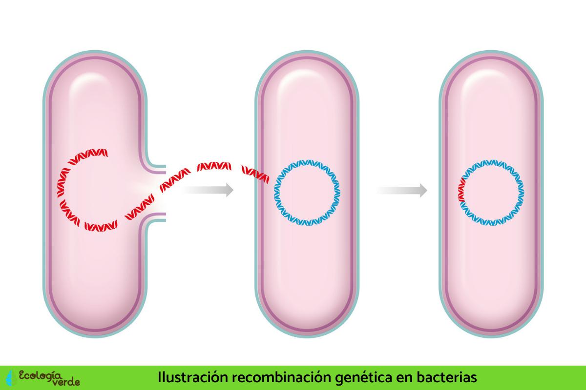 - En bacterias y virus: en este caso encontramos tres tipos de mecanismos. La transformación recibe fragmentos de ADN exógeno para intercambiar información genética con el receptor. La conjugación ocurre entre dos bacterias a través del pili sexual, un tipo de conexión que ocurre entre dos células, una es donadora de material genético y otra es receptora. Por último, la transducción ocurre cuando un virus transfiere la información genética entre bacterias, sin necesidad de que las bacterias se comuniquen entre sí para intercambiar información. Es así como la recombinación también toma lugar durante la infección de plásmidos bacterianos o virus. Si quieres conocer la Diferencia entre virus y bacteria, no dudes en echarle un vistazo a este otro artículo de EcologíaVerde que te recomendamos.