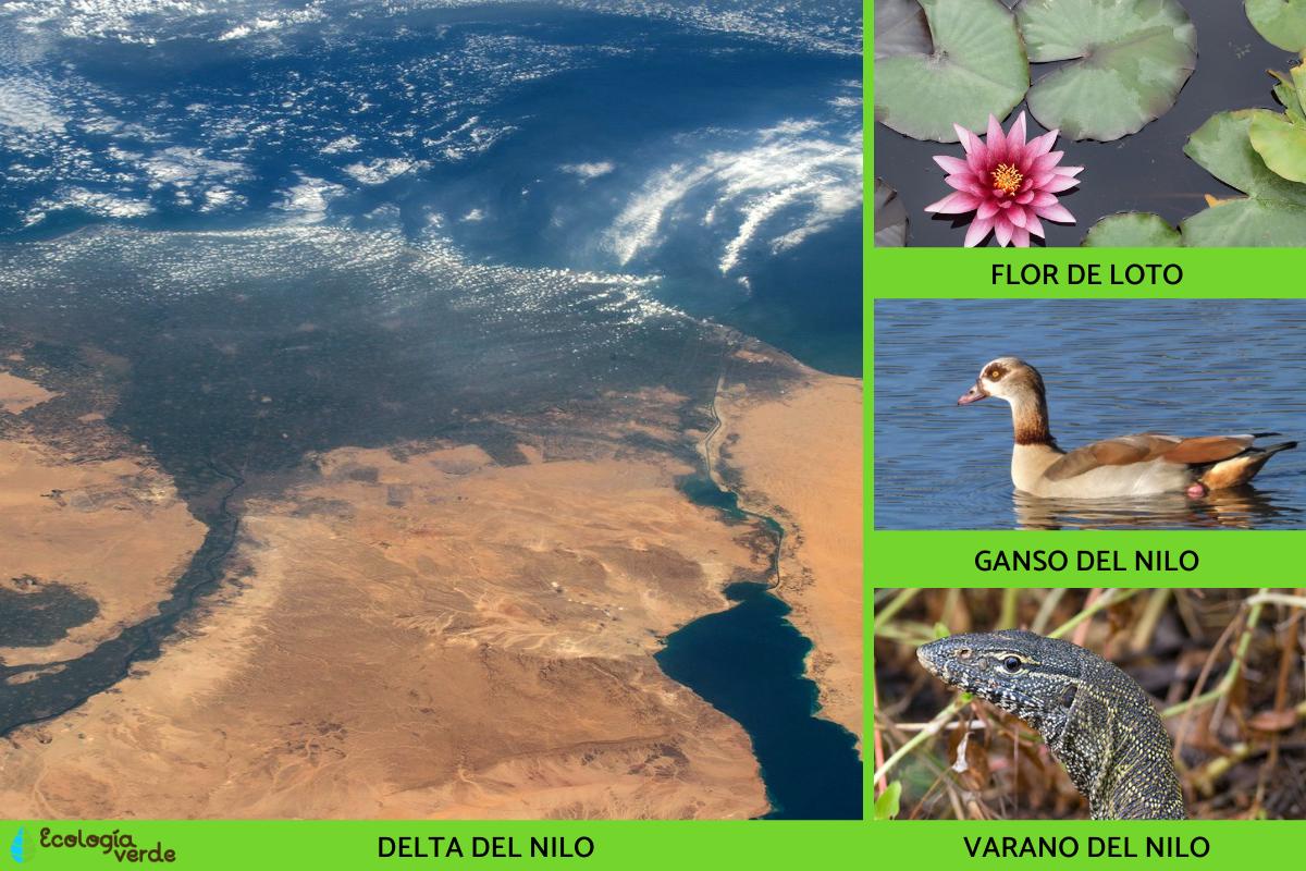 Las últimas dos regiones naturales se desarrollan en torno al río Nilo, con rica biodiversidad por el tránsito de agua. La región del Delta del Nilo, también conocida como el Bajo Egipto, recibe el agua del río Nilo para formar al Delta que desemboca en el mar Mediterráneo, al norte del país. Abarca desde Alejandría hasta el Puerto Said, cuya gran extensión de 240 kilómetros lo convierte en uno de los deltas más grandes del mundo.