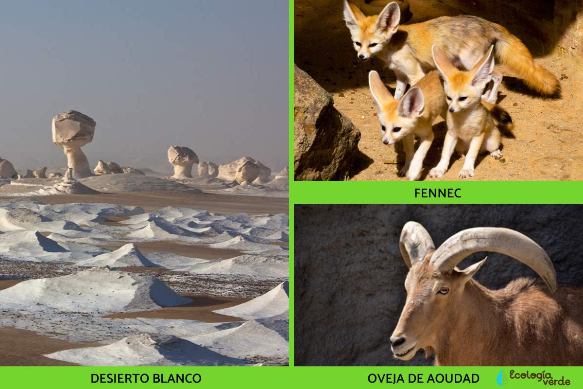 Hay abundancia de metales y piedras preciosas, yacimientos de granito negro, caliza de Creta en el Desierto Blanco y arena con cuarzo. La fauna no es muy variada por tratarse de un desierto, pero pueden encontrarse fennecs (Vulpes zerda) y ovejas de aoudad (Ammotragus lervia), entre otros. Tanto este desierto como el desierto oriental eran llamados por los antiguos egipcios como la “Tierra Roja” porque sus dunas eólicamente generadas son de color rojizo.