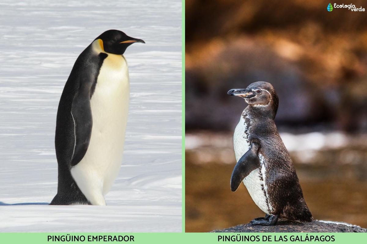 Los pingüinos que viven más hacia el hemisferio sur son los de mayor tamaño, como es el pingüino emperador (Aptenodytes forsterique) mide 120 centímetros de alto. Es endémico de la Antártida y por eso necesitan una mayor superficie para retener mejor la temperatura. Comparándolo con los pingüinos de las Galápagos (Spheniscus mendiculus), que miden 50 centímetros de alto.