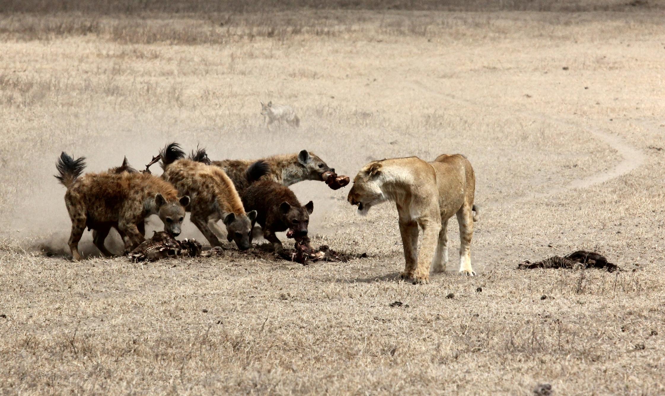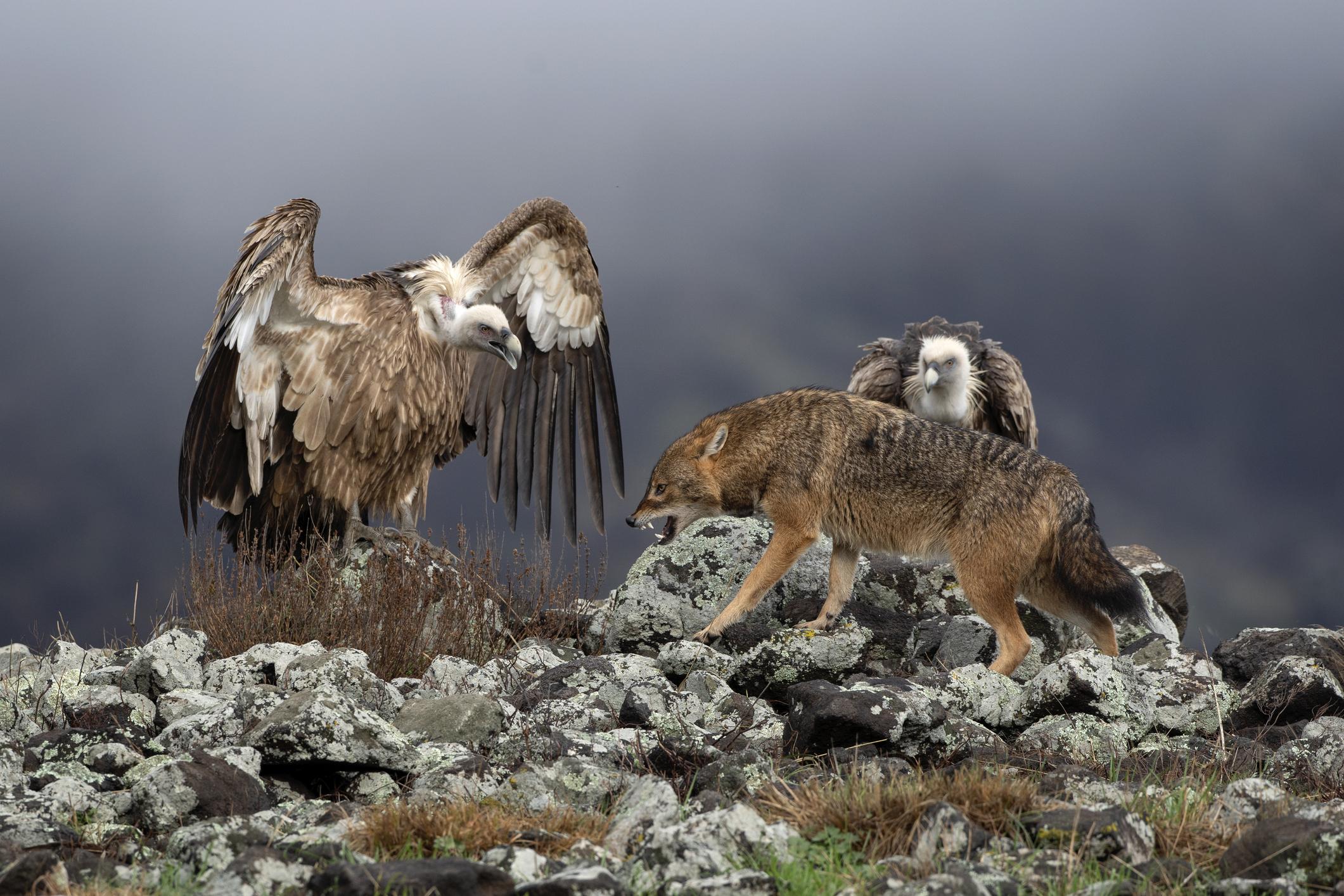 - Los chacales y buitres se pelean por la carroña que dejan los grandes depredadores.