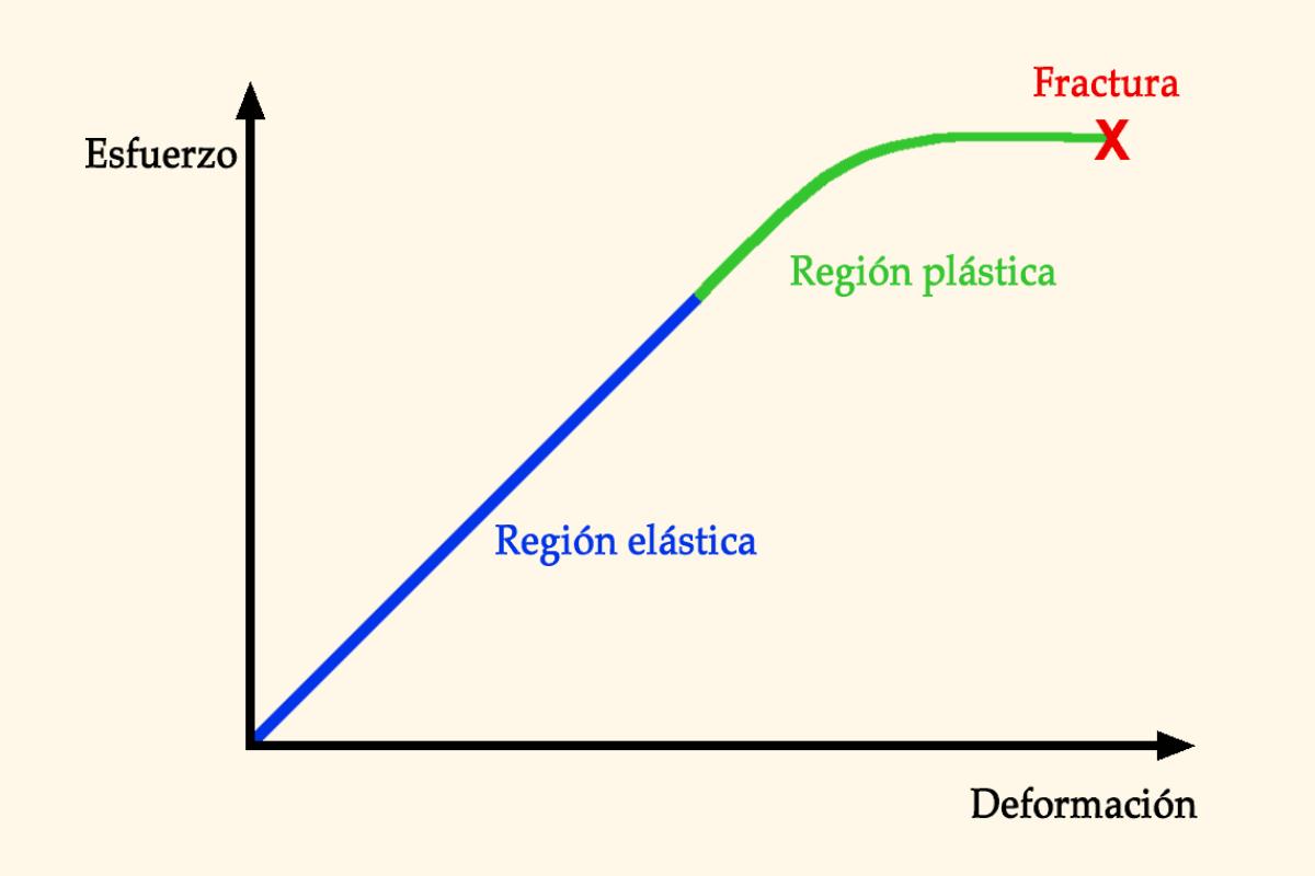 - Elasticidad: consiste en la capacidad de un material para recuperar su forma original después de cesar el esfuerzo. El límite para la deformación elástica viene dada por la Ley de Hooke, que arroja valores bajos por encima de los cuales acontecen deformaciones frágiles y/o dúctiles.