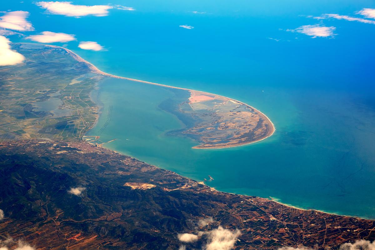 - El río Ebro desemboca en el mar Mediterráneo, en la zona del municipio de Deltebre.