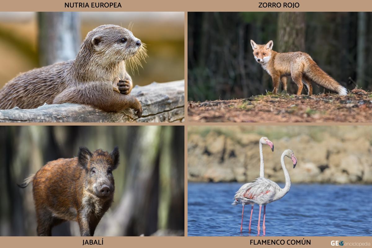Respecto a la fauna, podemos encontrar mamíferos como la nutria europea, el zorro rojo, el erizo común y el jabalí; aves como el flamenco común, la garcilla bueyera, la garceta común, la garza real, el halcón peregrino, el martín pescador común y el mirlo acuático; y peces como la anguila europea, la carpa común, la lubina, el mújol, la perca de río y la trucha común.