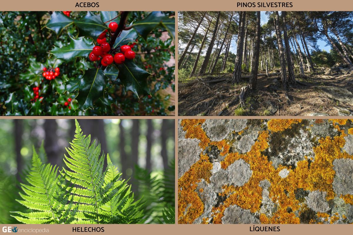 Su flora se agrupa en bosques ribereños, chaparrales, jarales y pastizales en los que predominan los álamos temblones, acebos, avellanos comunes, enebros comunes, enebros rojos, fresnos sureños, olmos comunes, pinos resineros, pinos silvestres, robles marojos, sabinas albares, sauces cenizos y tejos comunes; además de una gran variedad de helechos y líquenes.