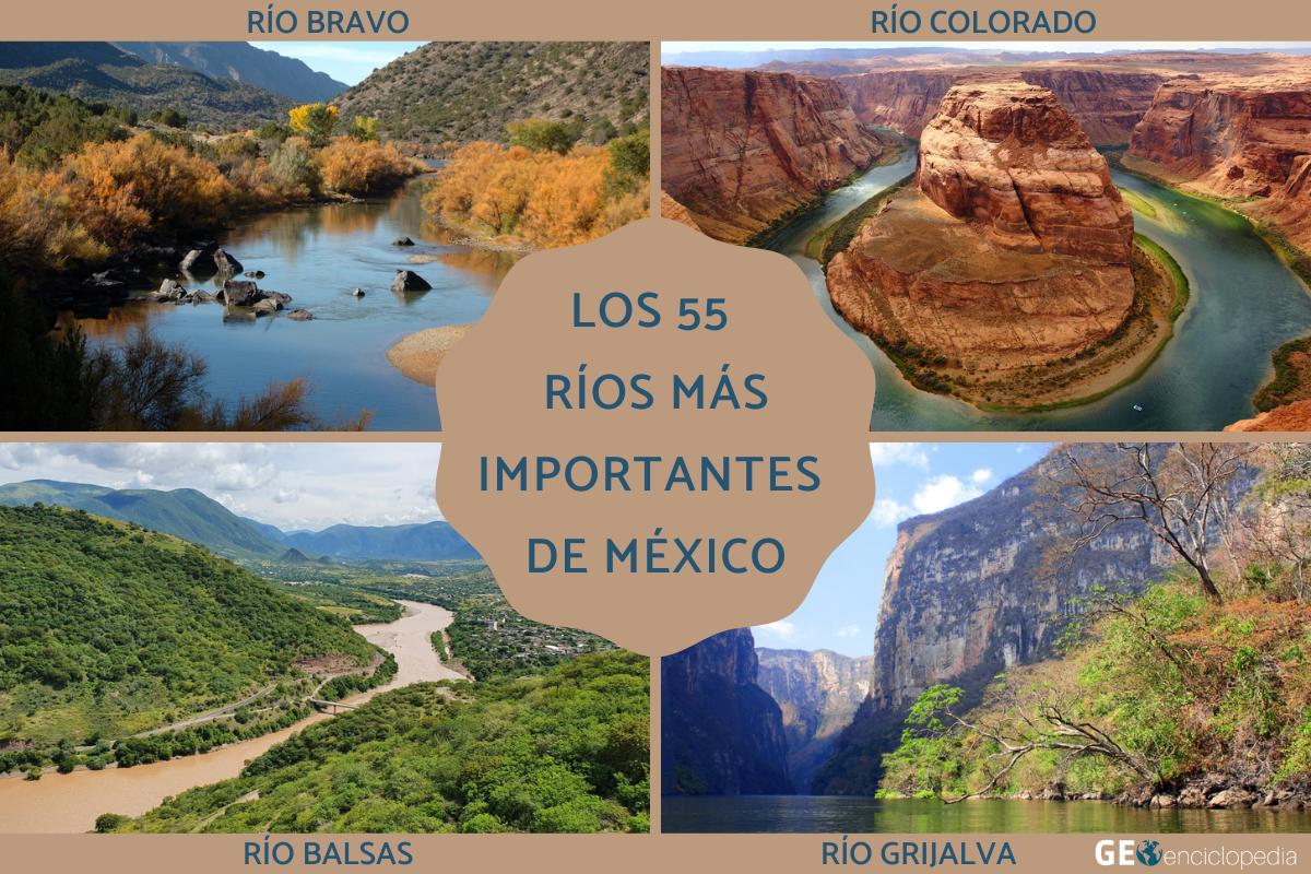Los ríos más importantes de México son: río Bravo, río Colorado, río Usumacinta, río Lerma, río Conchos, río Papaloapan, río Balsas, río Nazas, río Grijalva y río Sonora.