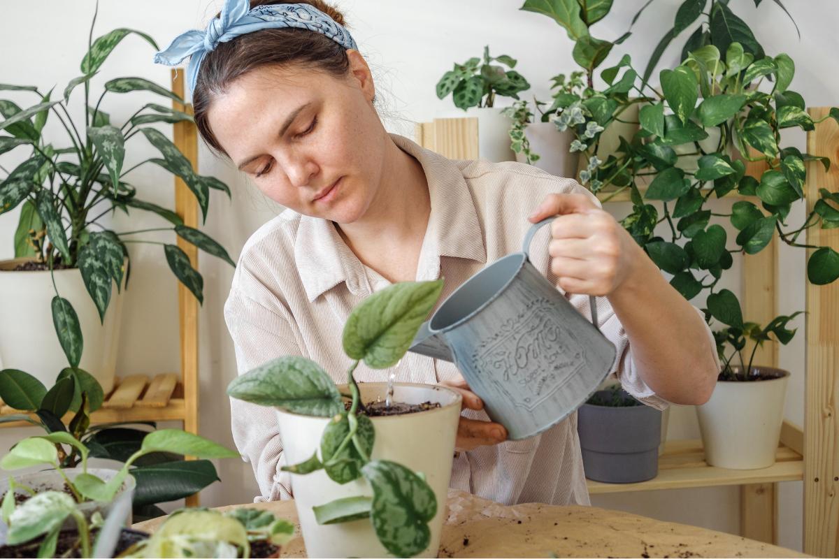 Riego de Scindapsus pictus o poto plateado