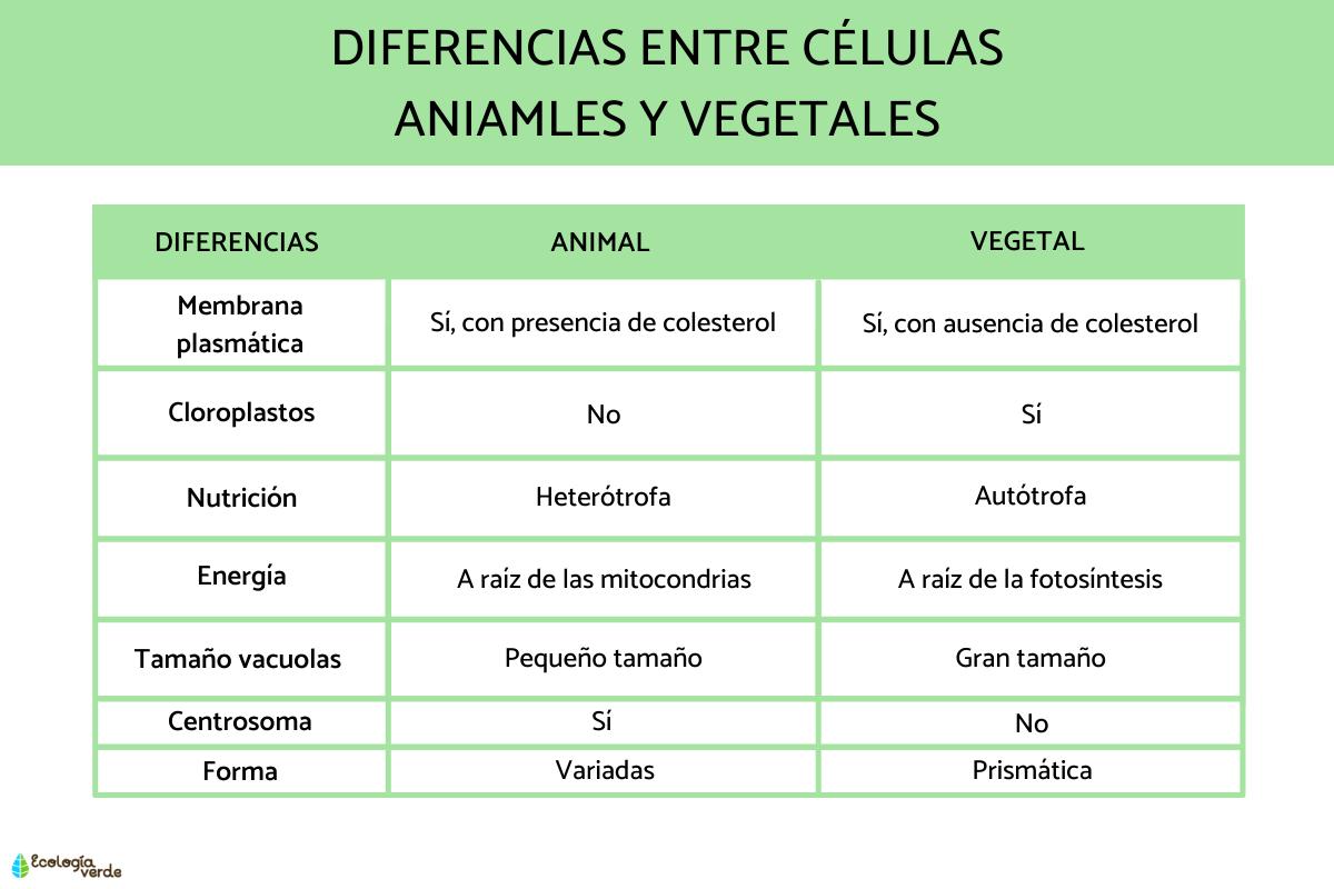 Además, a modo de resumen, en esta tabla o cuadro comparativo con las diferencias entre células animales y vegetales podrás verlo de forma sencilla. También te recomendamos que, para que puedas ampliar esta información de forma práctica, leas este otro artículo de EcologíaVerde sobre las Semejanzas y diferencias entre plantas y animales.