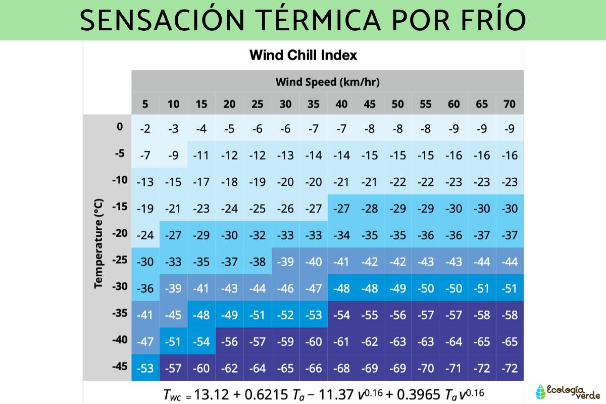 Este efecto se mide con el Índice de Enfriamiento por Viento, que calcula cuánto más baja se siente la temperatura en función de la velocidad del viento. Por ejemplo, si la temperatura real es de 0 °C, pero hay vientos de 40 km/h, la sensación térmica podría descender hasta -10 °C o menos.