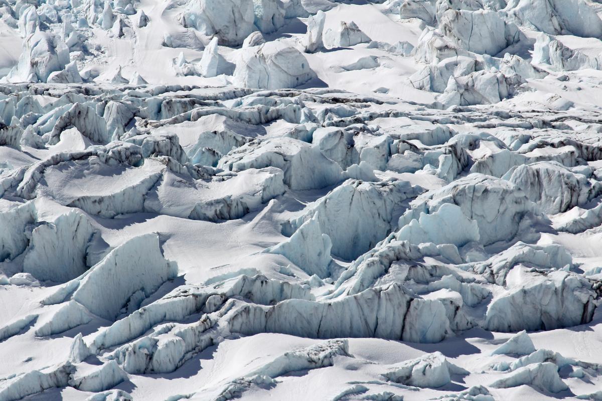 - Intersección de grietas: cuando varias grietas se cruzan entre sí, delimitan bloques de hielo que quedan aislados del resto del glaciar.