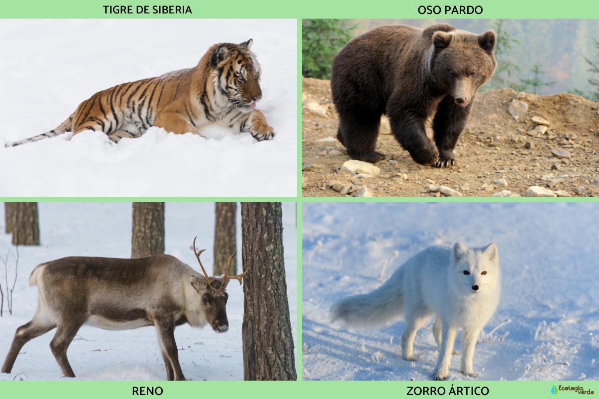 - Tigre de Siberia (Panthera tigris altaica): el felino más grande del planeta. Vive principalmente en bosques del Lejano Oriente siberiano. Está en peligro de extinción, pero programas de conservación han permitido aumentar su población.