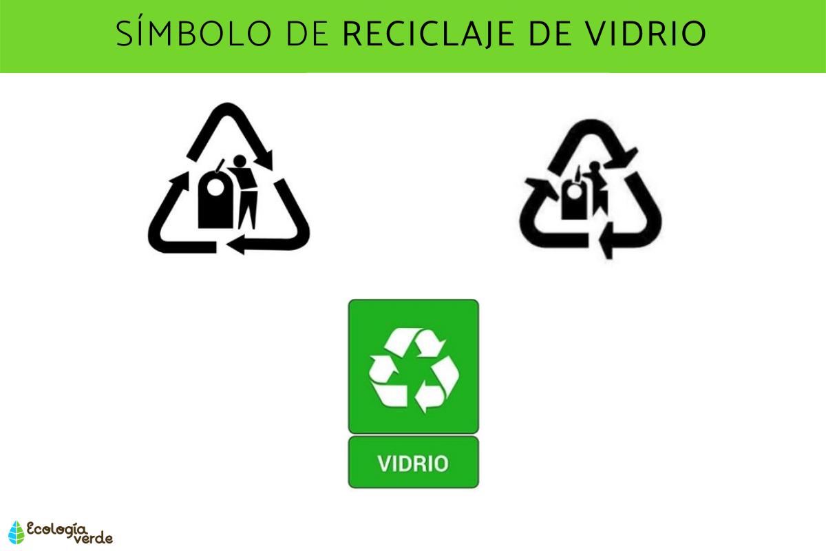 Las botellas de vidrio también tienen su correspondiente símbolo, con respecto a los envases a tirar en el contenedor de vidrio debemos tener especialmente cuidado, ya que a veces se depositan envases de cristal. Vidrio y cristal no son lo mismo: si tiramos el cristal al contenedor de vidrio, en el proceso de reciclaje se puede ver alterada la composición de los nuevos envases que se generan. Si no lo sabías, el vidrio que se recoge de los contenedores verdes, se tritura hasta obtener su mineral de origen, el sílice, y a partir de este se hacen los nuevos envases. Aquí puedes ver algunos de los símbolos del reciclaje del vidrio, aunque a veces puede aparecer sencillamente el símbolo del reciclaje de dos o tres flechas.