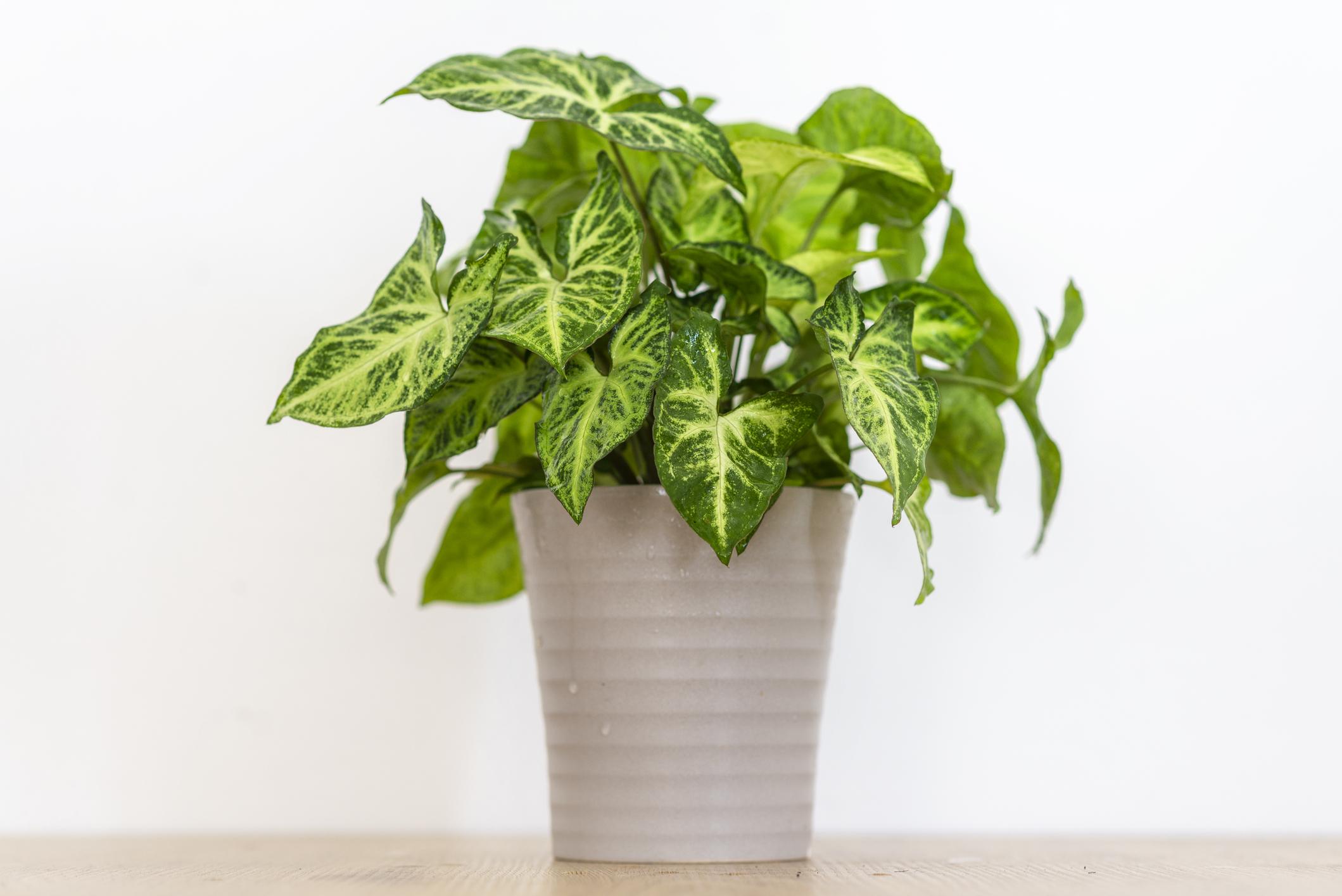 Los cuidados del singonio son temperatura cálida, luz filtrada, suelo con drenaje, fertilizante mientras crece, riego moderado y poda si crece demasiado alto. Cómo reproducir el singonio: mediante esquejes a colocar en agua hasta que desarrolle raíces.