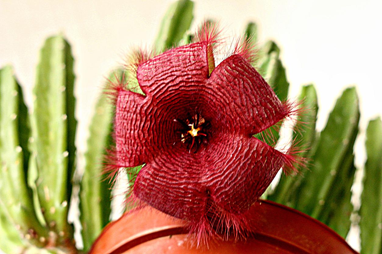 La planta Stapelia es una difícil de olvidar. Ya sea por su gran y particular flor, que los aficionados de Stranger Things reconocerán al primer vistazo, como por el fétido aroma que esta desprende, la Stapelia deja una impresión que, aunque impactante, no es para todos los públicos.