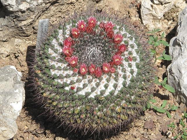 Los cactus Mammillaria son también un género, el cual se diferencia de otras plantas de su familia porque las areolas de las que nacen sus espinas están dispuestas por toda la planta en espiral, en lugar de en costillares. Dependiendo de la especie concreta, sus espinas pueden ser finas y largas, sedosas, dándole al cactus un aspecto muy reconocible y aterciopelado. Estas plantas suculentas con flores las tienen dispuestas en una corona en la parte superior de la planta, con tonalidades que van del rosa al blanco.
