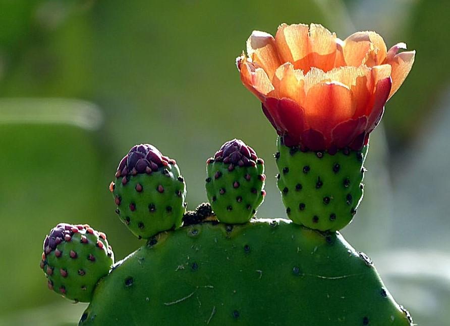 Los Opuntia son todo un género de cactus con flores con más de 300 especies, todas originarias del continente americano. Son cactus llamados nopales o chumberas y se trata de plantas que pueden alcanzar grandes tamaños, con hojas aplanadas en forma de raqueta y cubiertas de largas espinas. Algunos dan fruto comestible, muy consumidos, y sus flores son de distintos colores: amarillas, naranjas, rojas y púrpuras.