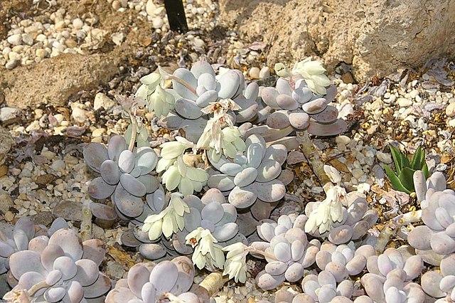 Perteneciente a la familia Crassulaceae, el Pachyphytum oviferum es una especie propia de México y que es conocida como piedra de luna o piedra lunar. Esta planta suculenta cuenta con pequeños tallos blanquecinos y con gruesas hojas en forma de ovoide y aplanadas. Sus flores son pequeñas y con forma de campana de un color blanco verdoso. Su época de floración es en primavera. Se utiliza tanto como planta de interior como para decorar pequeños balcones o en invernaderos.