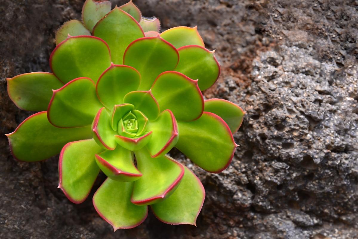 Es una suculenta rara porque produce grandes rosetas que parecen flores gigantes en tonos vibrantes, que parten cada una de un tallo de apariencia leñosa. Se le conoce como aeonium arborescente, pues puede crecer hasta 2 metros de alto. Por lo general son verdes, pero hay algunas variedades de tonos casi negros con centro rojo. Se recomienda tener en exterior por su gran tamaño y su requerimiento de exposición solar completa.
