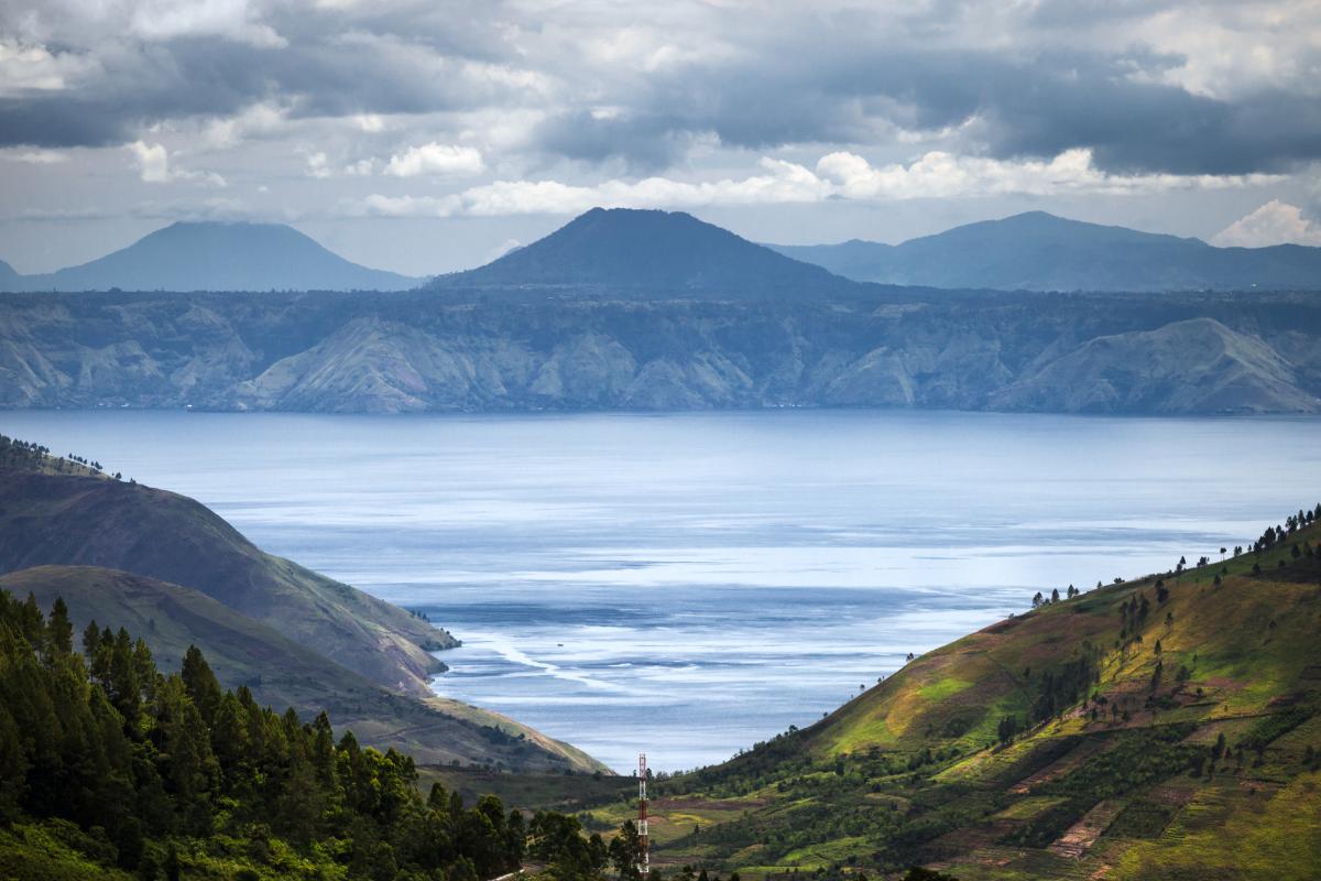 El supervolcán del Lago Toba, situado en la isla de Sumatra, es el mayor cráter volcánico del mundo. Su caldera se formó hace unos 74.000 años tras una de las erupciones más grandes conocidas, la cual liberó aproximadamente 2.800 kilómetros cúbicos de material volcánico. Esta erupción tuvo efectos globales significativos, afectando el clima y causando un invierno volcánico. El lago resultante, Toba, es el lago volcánico más grande del mundo, con aproximadamente 100 kilómetros de largo y 30 kilómetros de ancho.