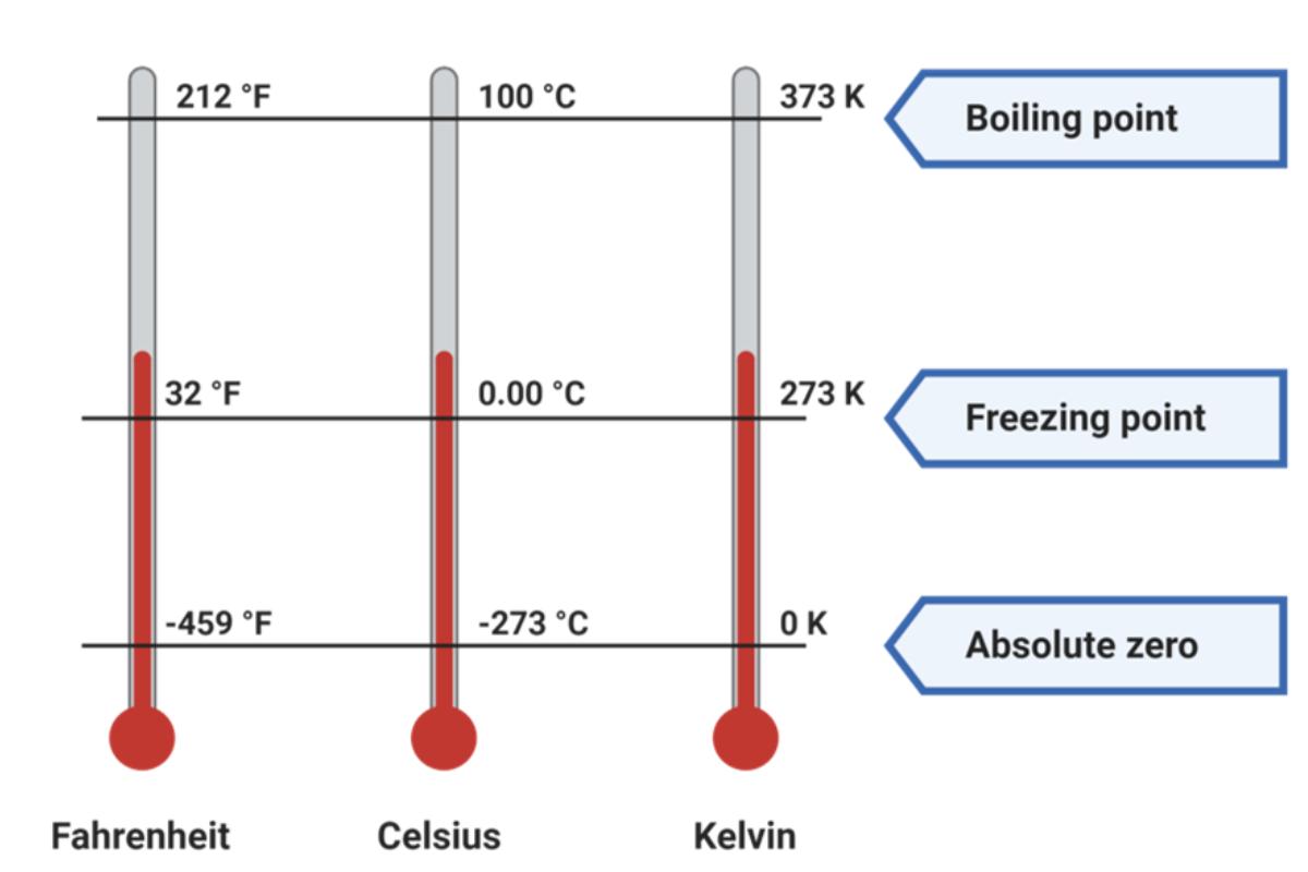 En el Sistema Internacional de Unidades (SI), la unidad empleada es el kelvin (K), asociado a la escala Kelvin o escala absoluta, donde el valor de 0 K representa el cero absoluto, es decir, el punto en el que cesa todo movimiento molecular. Un kelvin tiene la misma magnitud que un grado Celsius, lo que significa que los incrementos de temperatura son equivalentes en ambas escalas, aunque parten de referencias diferentes. Fuera del ámbito científico, las escalas más utilizadas son la Celsius, también conocida como centígrada, y, en menor medida, la Fahrenheit, que continúa siendo de uso común principalmente en los Estados Unidos. A continuación podemos analizar cada escala con mayor detalle: