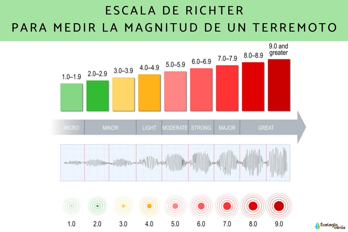 Existen muchas maneras de medir los terremotos, algunas escalas miden la magnitud del mismo, otras miden simplemente la intensidad. Sin embargo, la escala más utilizada es de magnitud y se denomina escala de Richter o escala de magnitud local (M). Se trata de una escala logarítmica de magnitudes y se obtiene a partir de la relación entre la fuerza y la energía liberadas. Precisamente, la escala de Richter permite medir terremotos de 2 a más de 8 de magnitud y de 0 a 400 kilómetros de profundidad.