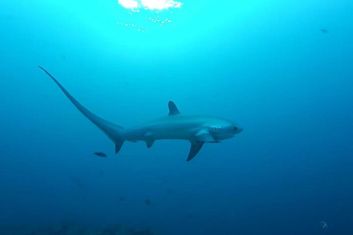 Este tiburón también es conocido como zorro pelágico. Habita en el océano Indo-Pacífico, en aguas tropicales y subtropicales. Es fácilmente distinguible por su enorme cola recta, que mide casi lo mismo que su cuerpo. Como la mayor parte de los tiburones, el zorro pelágico es cazado para que se venda su carne, hígado, piel, aletas, dientes y grasa, por lo que ya se encuentra en la lista roja de tiburones cercanos a la extinción. De su hígado se extrae el apreciado aceite de escualeno, muy utilizado en la industria cosmética, alimentos supuestamente saludables y para la elaboración de vitaminas de alta calidad. A ello se suma su potencial reproductivo muy limitado, por lo que mientras decenas de tiburones son cazados cada día, las nuevas crías se cuentan de una a una.