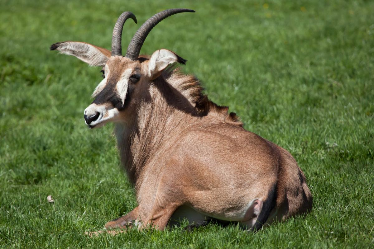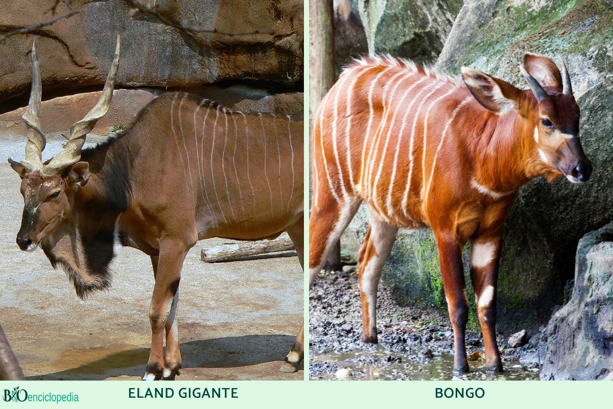Es la especie más grande de antílope. Mide 2,9 metros en promedio, y destacan además porque tienen delgadas líneas blancas que cruzan su cuerpo pardo. Es oriundo de África central y del oeste. Están vulnerables a desaparecer. Las hembras también tienen cuernos, y son en espiral formando una V. Del cuello les cuelga una gran papada similar a la de ciertos bóvidos.