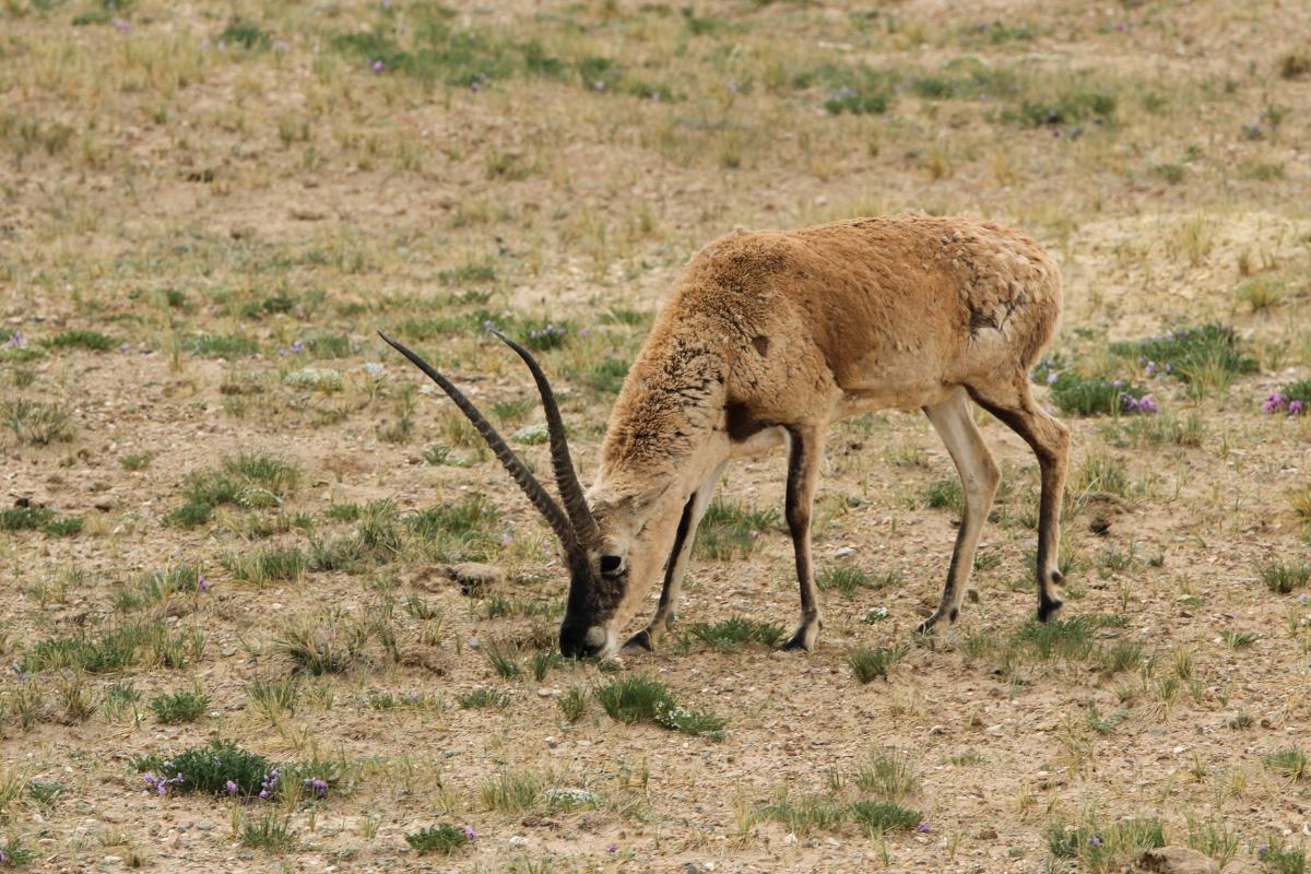 Habita en la planicie del Tíbet, y es endémico de la zona, adaptado a 5.000 metros de altura. Es de talla mediana. Las patas son particularmente largas dándole un aspecto de altura, con un cuerpo compacto cubierto por pelaje similar al de las ovejas. Los cuernos son desproporcionados a cuerpo, midiendo 60 centímetros de largo.