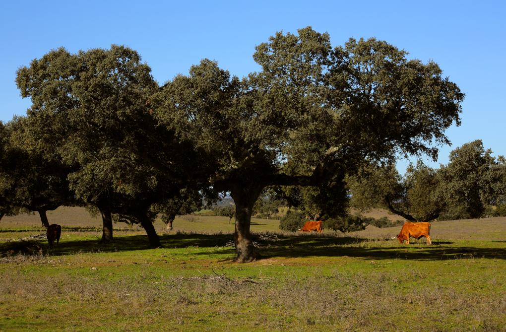 El alcornoque (Quercus suber) es un árbol de hoja perenne. Tiene unas hojas de entre 4 y 7 centímetros de longitud de color verde oscuro y tiene bellotas de unos 3 cm de longitud que se produce de septiembre a enero, cuando las heladas son mucho más numerosas. Estos árboles viven entre 150 y 250 años. El alcornoque es un árbol que necesita climas suaves y húmedos. Sus frutos, las bellotas, son amargas y no son comestibles, aunque se utilizan para cebar animales, sobre todo a los cerdos.