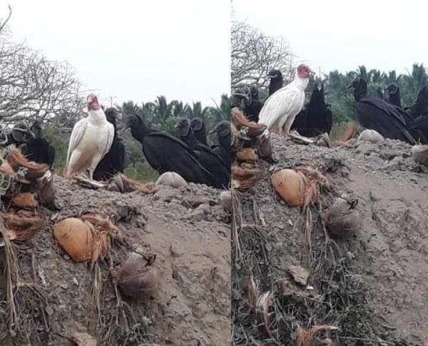 En Chone Manabí Ecuador hay un buitre blanco totalmente albino hermoso