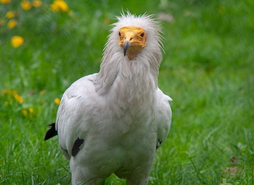 Neophron percnopterus tiene hábitos bastante extraños, aún para tratarse de un carroñero. Este animal utiliza rocas para abrir huevos de avestruz y consumir el contenido, lo que habla de su enorme inteligencia para apoyarse de herramientas. También son muy cuidadosos con sus nidos, en donde utilizan pequeñas varas para enrollar lana. Si bien se alimentan principalmente de carroña, también pueden cazar pequeños animales en caso de no encontrar cuerpos en descomposición.