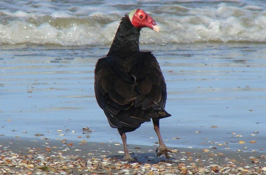 Cathartes aura es un buitre americano del Nuevo Mundo, desde Canadá hasta México, migrando a las zonas frías canadienses únicamente en época reproductiva. Es conocido también como buitre guajolote por su cabeza roja desnuda. Su pico es ganchudo para lograr desgarrar a sus presas para alimentarse. Su comportamiento es muy silencioso y su canto son siseos. Es muy madrugador, suele posarse apenas sale el sol en las copas de los árboles con sus alas extendidas para tomar calor.