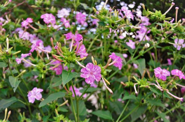 La Mirabilis jalapa es una especie de origen americano y es tan resistente que se ha convertido en una planta invasora en algunas partes. El dondiego de noche alcanza alturas de algo más de un metro, con hojas de verde brillante y flores muy fragantes en forma de trompa, de vivos tonos rosas, rojos, amarillos o blancos e incluso mezclados. En ambientes no muy fríos, vive todo el año sin perder su parte aérea.
