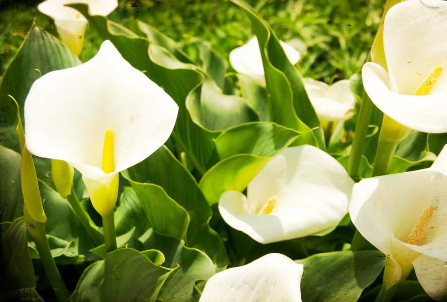 La también llamada cala es una planta bulbosa de origen sudafricano, que rebrota cada año a mediados de primavera. El lirio de agua es muy fragante, con flores en forma de embudo y habitualmente blancas, aunque también es muy apreciada por sus grandes y carnosas hojas verdes. Es muy popular y demandada en arreglos florales.