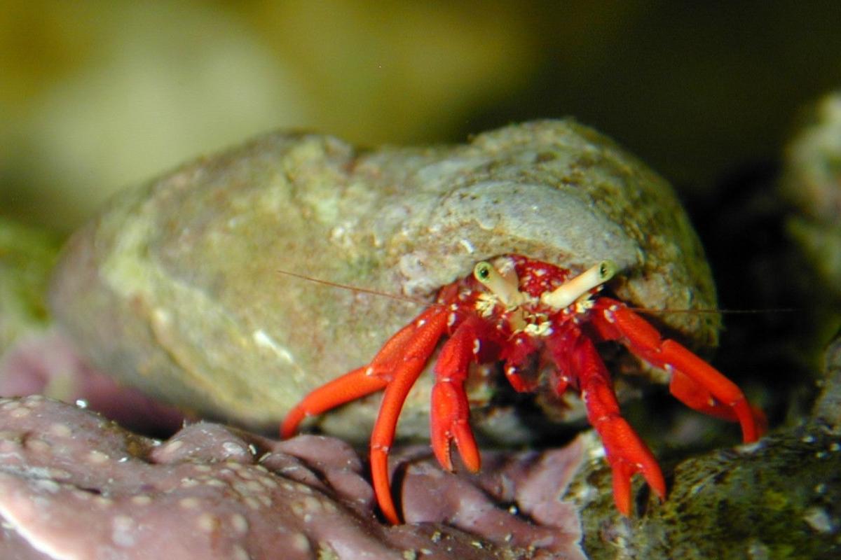 - Cangrejo ermitaño rojo de arrecife (Paguristes cadenati)