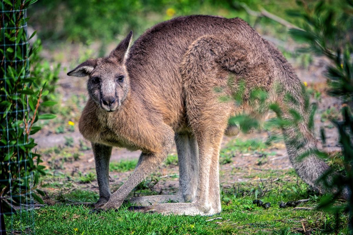 El canguro gris oriental es un majestuoso marsupial que habita en el sur y este de Australia, así como en Tasmania. Llega a pesar hasta 90 kg y medir casi 2 metros, es el canguro más grande de su grupo. Su pelaje suave varía de gris claro a marrón grisáceo. Es herbívoro, se alimenta de pastos y hierbas. Según la Lista Roja de Especies Amenazadas de la UICN, Macropus giganteus, se encuentra categorizada como “Preocupación Menor”.