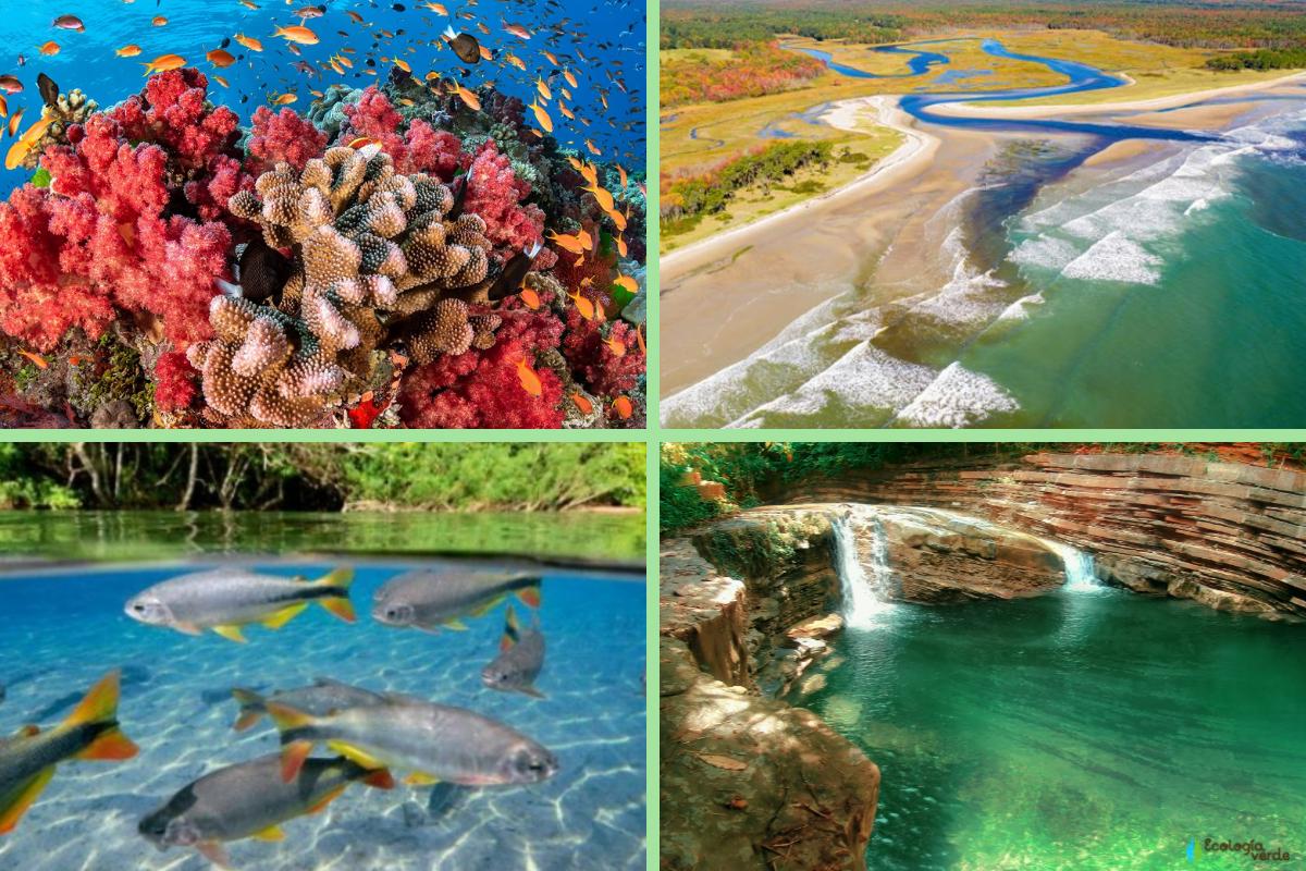 Los ecosistemas acuáticos se caracterizan por la presencia de agua como componente físico principal. Este agua puede ser dulce o salada, permitiendo diferenciar así entre ecosistemas marinos y dulceacuícolas.