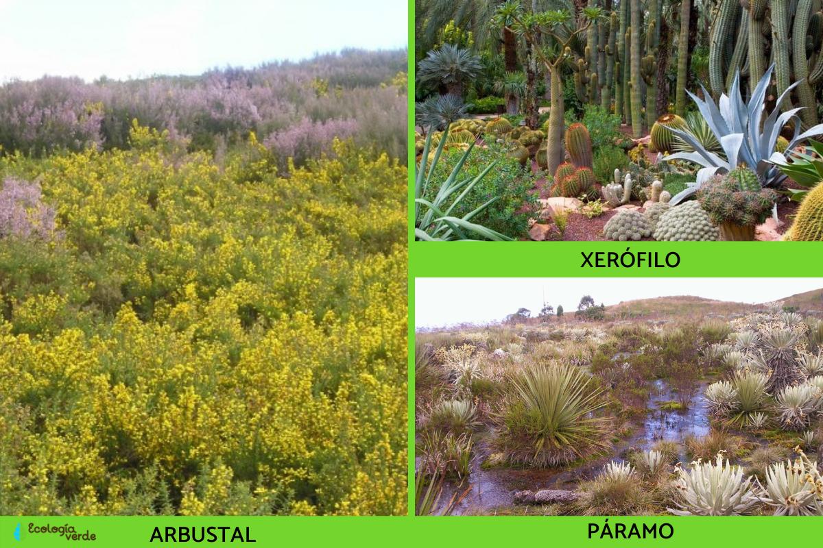 - Herbazales: pradera, pradera alpina, estepa y sabana.